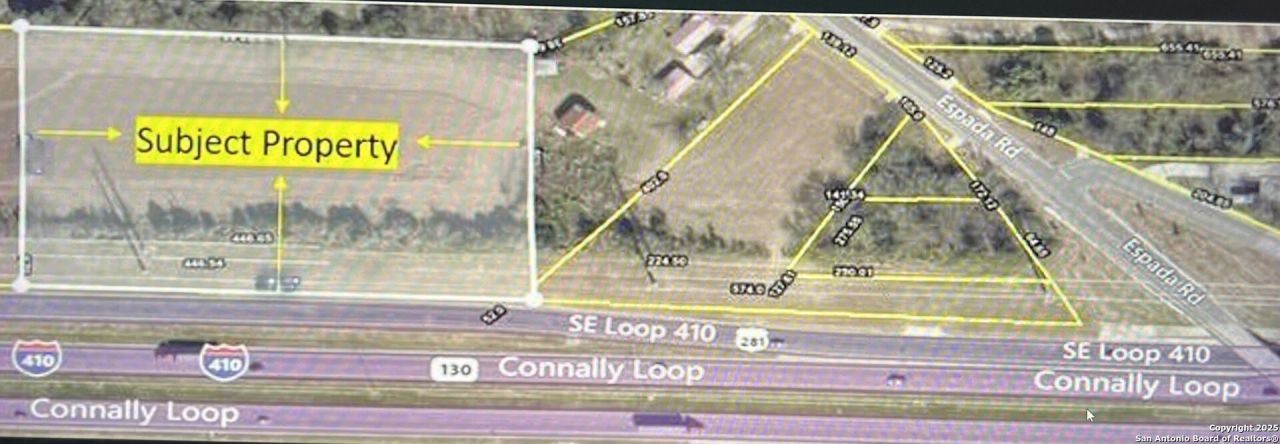 Location- Location- Location- C-3 NA & I-1, 3 +/- acres, Commercial Lot Property perfectly located on the access road of SE Loop 410 with frontage road; providing fantastic visibility, high traffic, and accessibility for your future development, between Espada Rd. and Roosevelt AVE. Located in an area of rapid commercial and residential growth with close proximity to the historic San Antonio Missions. Well situated near IH-37, Brooks City Base and Stinson Municipal Airport.